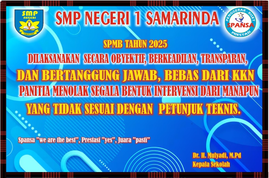 MKKS SMP Negeri menyambut  baik dengan keputusan Wali Kota tersebut. Diharapkan dengan konsistensi dan komitmen  berbagai komponen yaitu pemerintah kota, pihak sekolah dan masyarakat pelaksanaan SPMB di Kota Samarinda semakin baik. Untuk mewujudkan komitmen kepala sekolah SMP Negeri yang tergabung dalam Musyawarah Kerja Kepala Sekolah (MKKS) pada tahun pelajaran 2025/2026 berkomitmen melaksanakan secara obyektif, berkeadilan, transparan, dan bertanggung jawab, bebas dari  KKN. Sebagai tindak lanjut komitmen tersebut semua  SMP Negeri membuat barner  yang dicetak  dan  dishare  di media sosial yang isinya  bahwa panitia SPMB  di sekolah menolak segala bentuk intervensi dari siapapun yang tidak sesuai dengan Juknis.